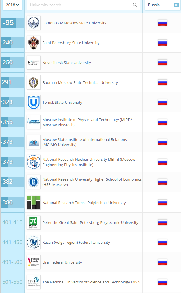 2. 俄羅斯大學排名