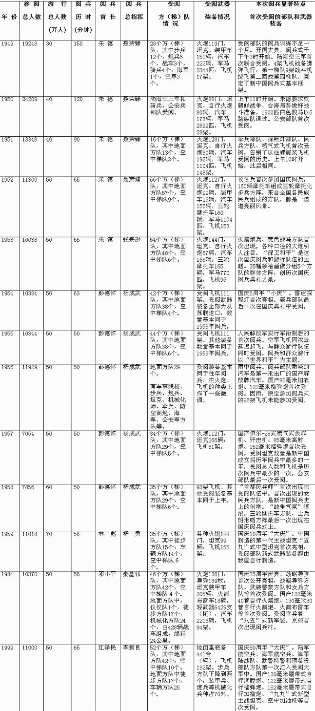 中國閱兵一覽表